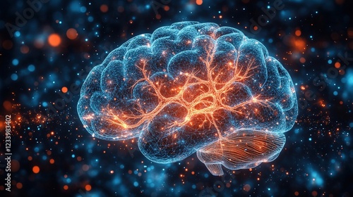 © Watcharaporn, Obraz premium Brain with glowing neurons illustrating neural connections and activity in a scientific representation