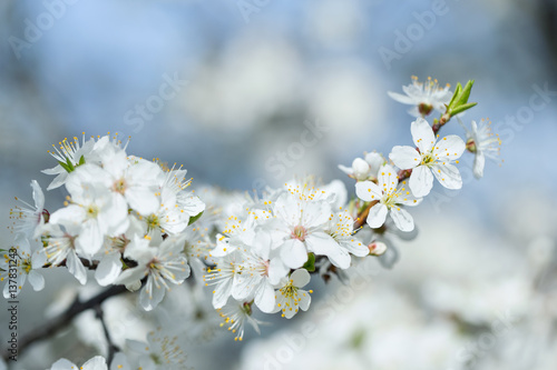 © alexlukin, Fototapeta premium Branch apple tree with white flowers