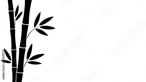 © Moinul, Naklejka premium Branch of bamboo with leaves silhouette on white Background