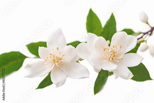 Obraz premium Branch of beautiful jasmine flowers on isolated white background