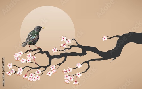 © olga_igorevna, Fototapeta premium Branch of blooming cherry