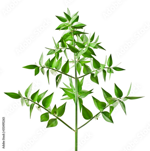 Fototapeta premium Branch of butcher's broom (Ruscus aculeatus) isolated on white background