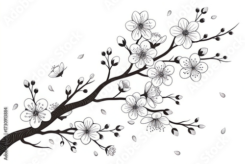 © Main, Naklejka premium branch of cherry blossom , -black-and-white-vector-cherry-blossom-branch-with- , flower, branch, spring, vector, nature, design.