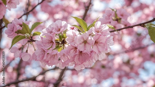 © TheWaterMeloonProjec, Obraz premium Branch of cherry blossoms captured up close against a spring background
