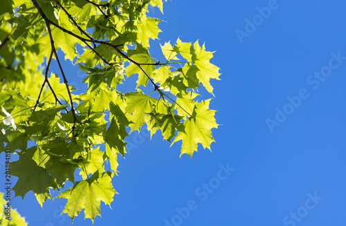 Obraz premium Branch of Maple Tree and blue Sky as background