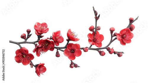 © Saim Art, Naklejka premium Branch of red flowers with fruit plant isolated on transparent background cutout PNG