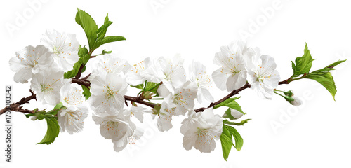 © adri, Fototapeta premium Branch of white blossoms with green leaves (1)