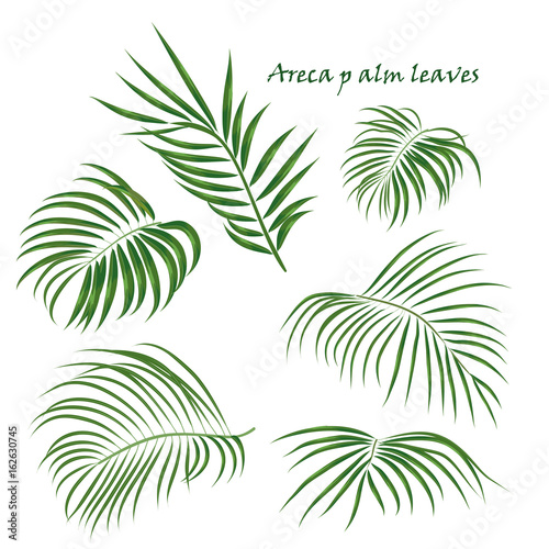 © zzayko, Fototapeta premium Branch tropical palm areca leaves. realistic drawing in flat color style. isolated on white background.