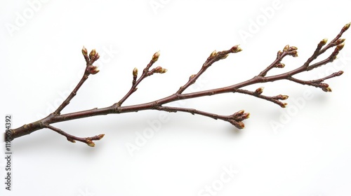 Fototapeta premium Branch with Budding Leaves Against White Background