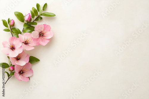 © Innese, Fototapeta premium Branch with pink blossom on pastel background, space for text. Greeting card template