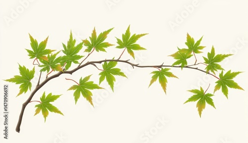 © Kawasan, Fototapeta premium Branch with vibrant green maple leaves