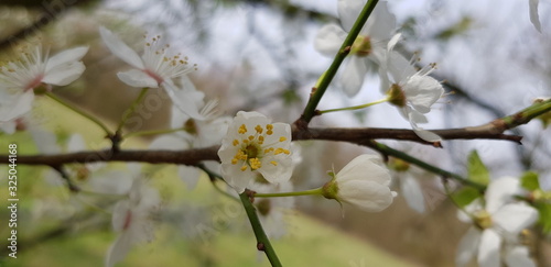 © Nicole, Obraz premium Branch with white blossoms in spring