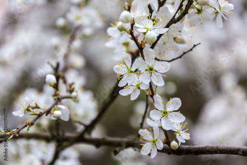 © darekb22, Fototapeta premium Branch with white flowers on a fruit tree