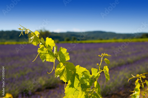 © Magalice, Obraz premium branche de vignes devant un champs de lavandes