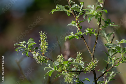 © lapis2380, Naklejka premium Branched parts of a willow on a twig.