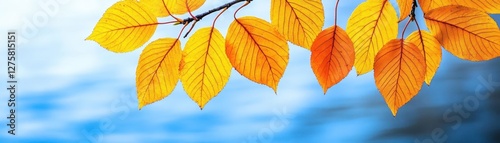 © taweesak, Fototapeta premium Branches and Autumn Leaves with Lake in Background