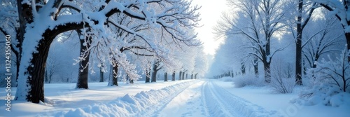 © Sathaporn, Naklejka premium Branches bowing under the weight of the snow-covered trees, snow covered, cold, frosty