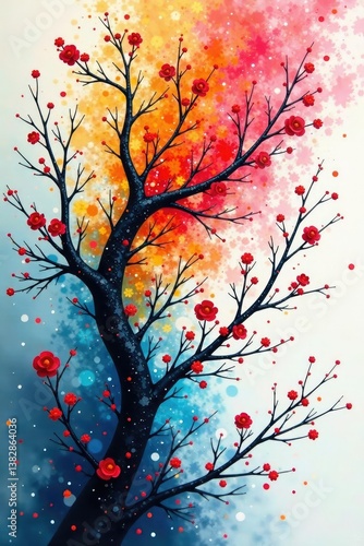 © Patchanee, Fototapeta premium Branches in a abstract composition on white canvas, art, abstract,