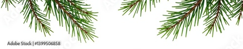 © Nopadon, Fototapeta premium Branches of a coniferous tree against white background, conifer, isolated