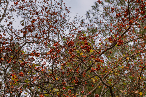 © Farkhad, Naklejka premium branches of a tree with orange berries against the sky