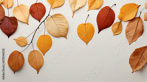 © a.h.27088077, Obraz premium Branches of colorful autumn leaves isolated on a white background. Copy space