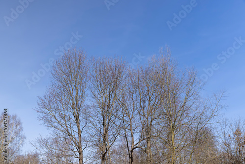 Fototapeta premium Branches of deciduous trees in the park in spring sunny weather
