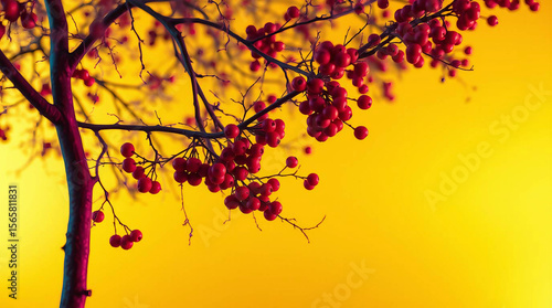 Fototapeta premium "Branches of Serenity: A Captivating Display of Red Berries Illuminated by...