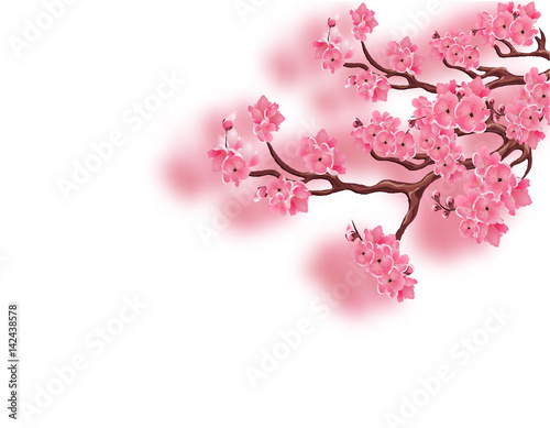 © lily_studio, Obraz premium Branches with a blooming pink cherry and not with focused. Sakura. Isolated on white background. illustration