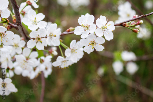 Fototapeta premium Branches with beautiful white flowers. Spring cherry blossoms.