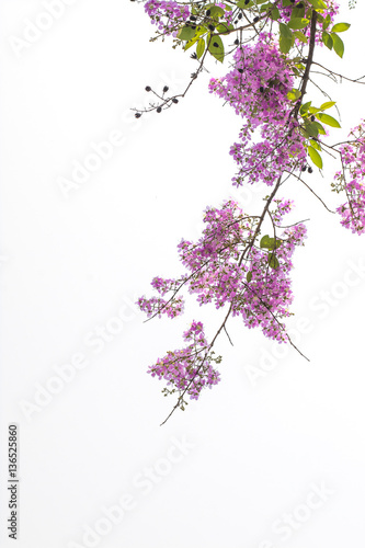 © photopeerayut, Fototapeta premium Branches with pink flowers blossoming with white background