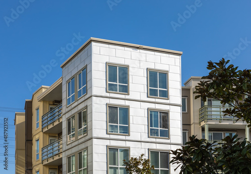 Naklejka premium Brand new apartment building on sunny day in BC, Canada. Architectural...