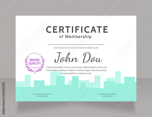 Obraz premium Brand quality certificate design template. Vector diploma with customized copyspace and borders. Printable document for awards and recognition. Kanit, Cabin, Dancing Script Bold, Regular fonts used