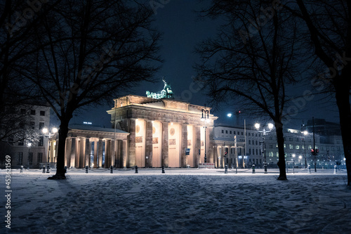 © Carina, Fototapeta premium Brandenburger Tor bei Nacht im Schnee