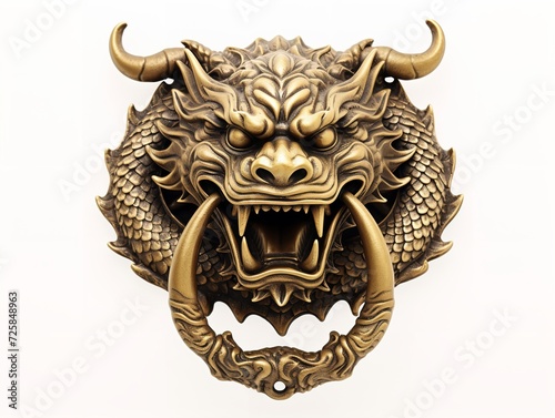 © VisualMarketplace, Fototapeta premium Brass Door Knocker Elegant Entryway Isolated on White Background AI Generated