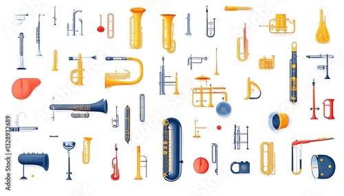 Fototapeta premium Brass Instruments Array on White.