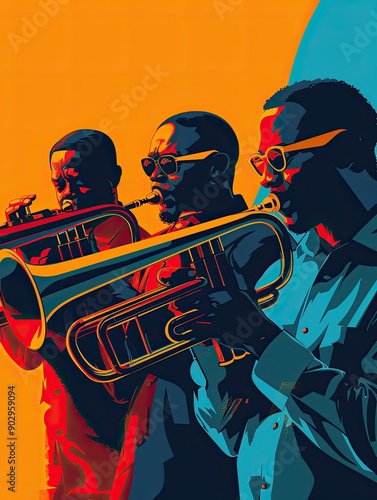 © THINNAKORN, Obraz premium Brass section, powerful horns, flat design illustration