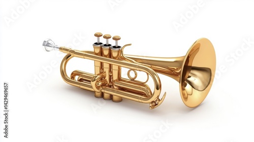 © Stocker, Obraz premium Brass trumpet isolated on white background. Generative AI