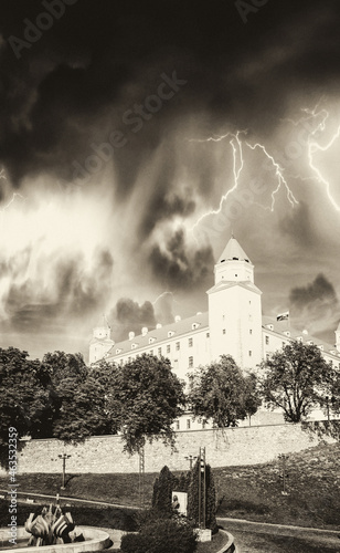 Fototapeta premium Bratislava Castle under a thunderstorm, Slovakia