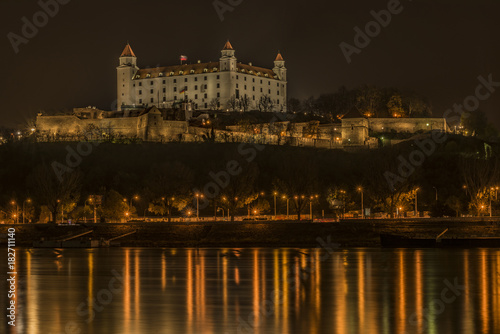 Naklejka premium Bratislava in autumn night near Dunaj river