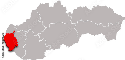 © WALDIR, Obraz premium bratislava region map ADMINISTRATIVE DIVISIONS of SLOVAKIA 3d isometric map