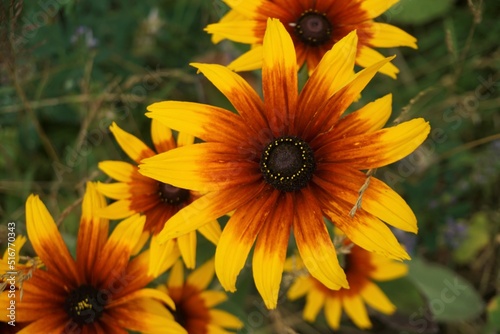 Obraz premium Braun-gelbe Blumen auf Wiese im Sommer