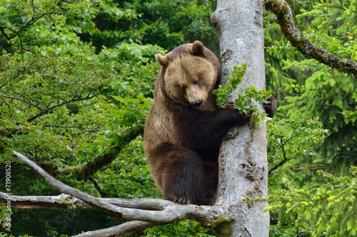 © Rüdiger Jahnke, Obraz premium Braunbär (ursus arctos) klettert auf einen Baum.