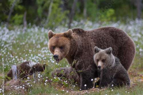 Obraz premium Braunbärfamilie in einem Sumpf in Finnland