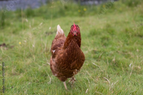 Fototapeta premium Braunes Haushuhn schaut in die Kamera, Porträt