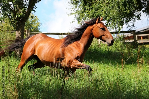 © Bianca, Fototapeta premium braunes pferd hat Spaß auf der Koppel