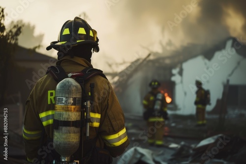 © Andrii , Fototapeta premium Brave Firefighters Battling Natural Disaster