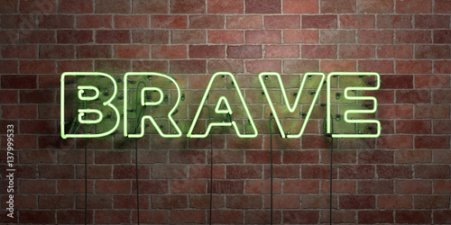 © Chris Titze Imaging, Obraz premium BRAVE - fluorescent Neon tube Sign on brickwork - Front view - 3D rendered royalty free stock picture. Can be used for online banner ads and direct mailers..