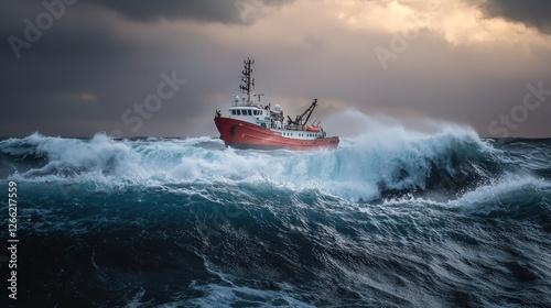 © atul _art, Naklejka premium Brave Vessel Navigating a Tempestuous Sea