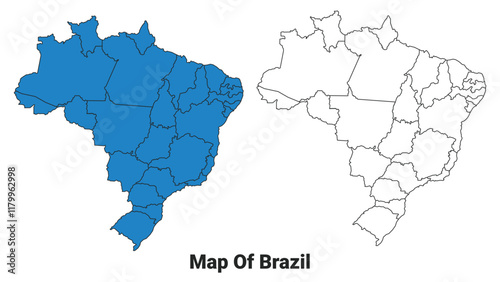 © Jayartiez, Fototapeta premium Brazil Blue detailed outline map border regions outline vector set