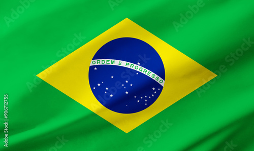 © Davizro Photography, Obraz premium Brazil flag background with waving fabric texture